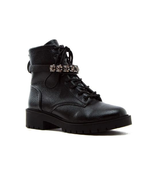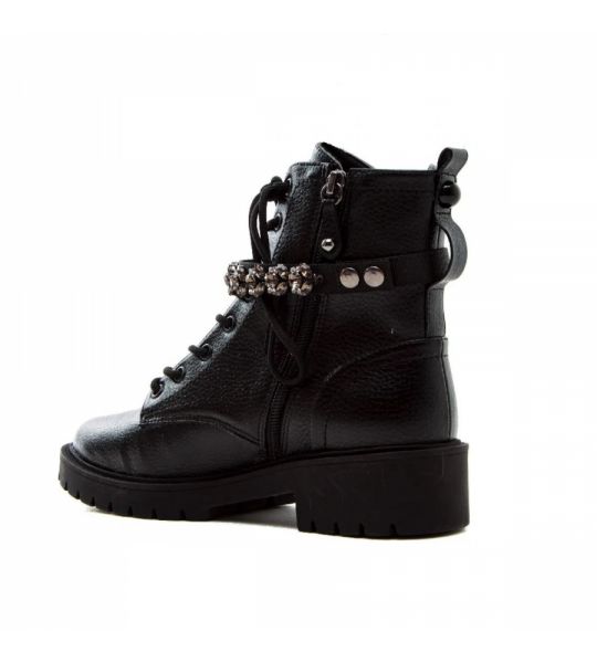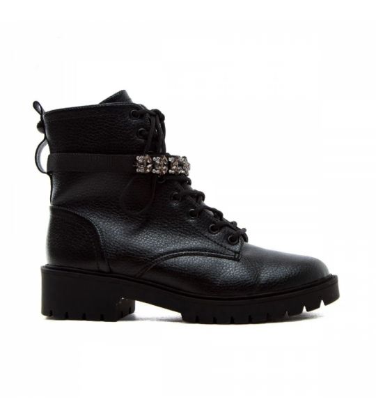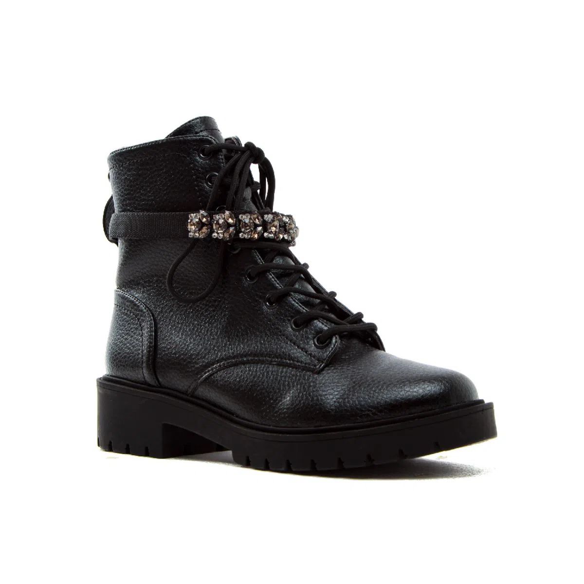 O Coturno de sola tratorada é uma das grandes tendências da estação. Confortável, é peça-chave para produções despojadas e repletas de atitude. Confeccionado em floater preto, tem o destaque especial para o enfeite removível de strass brilhante colorido. Possui a sola tratorada em 4 cm, o bico redondo e zíper na lateral para facilitar o calce.