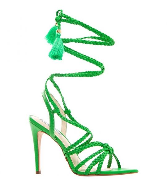 Salto fino forrado em couro verde