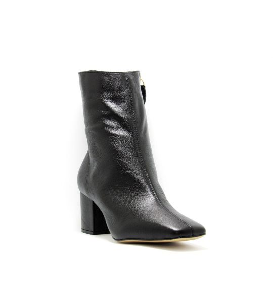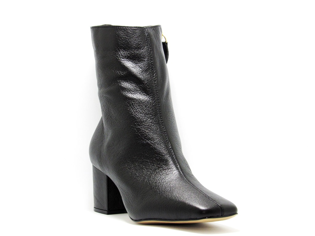 251146 - Bota Preta Salto Bloco Baixo em Couro - Lilian Soares