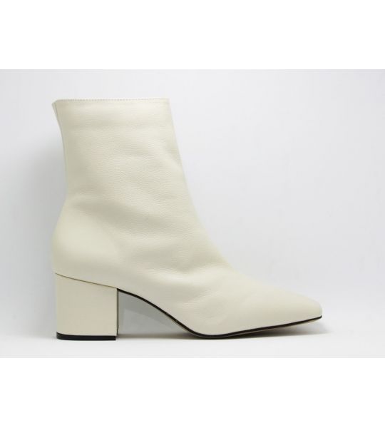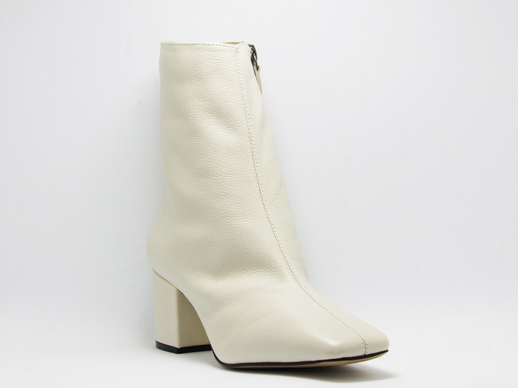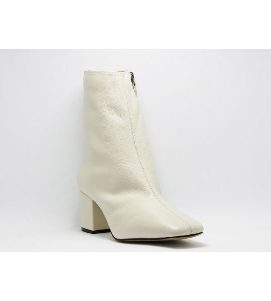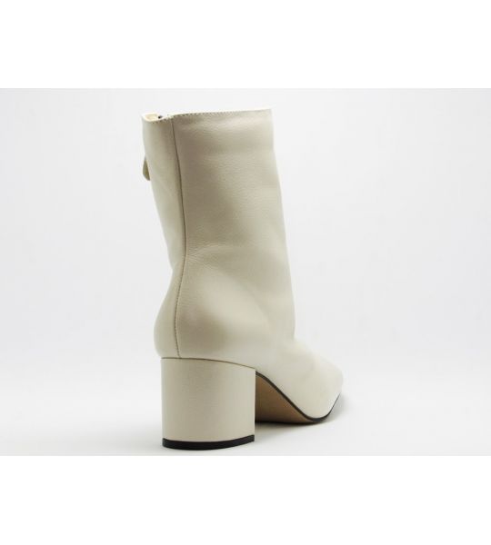 251147 - Bota Off White Salto Bloco Baixo em Couro - Lilian Soares