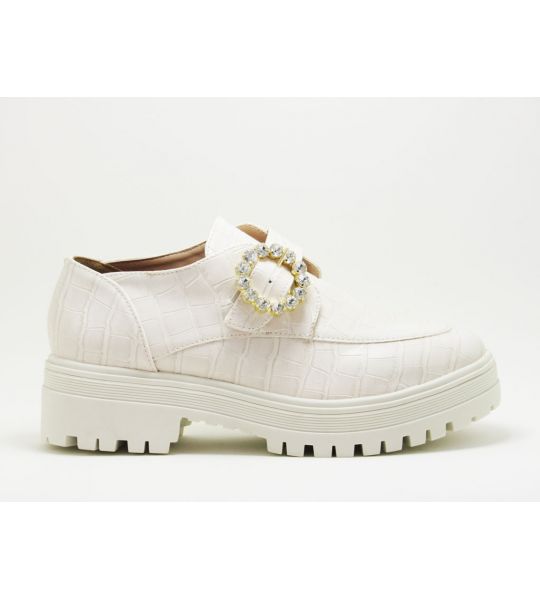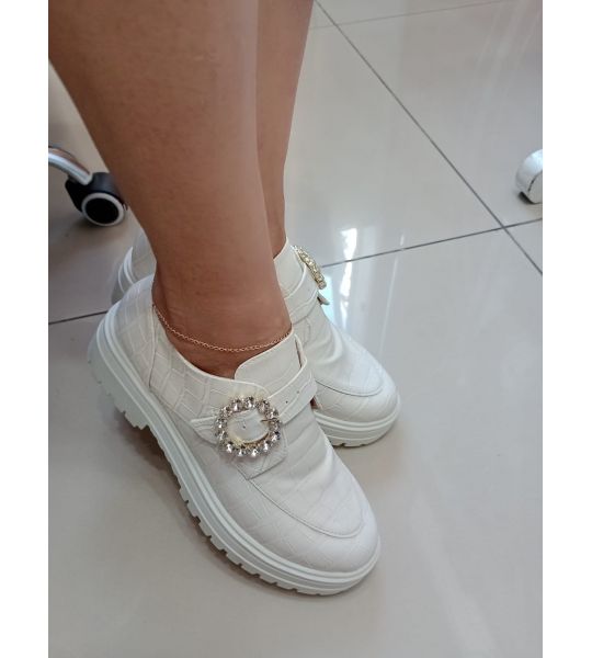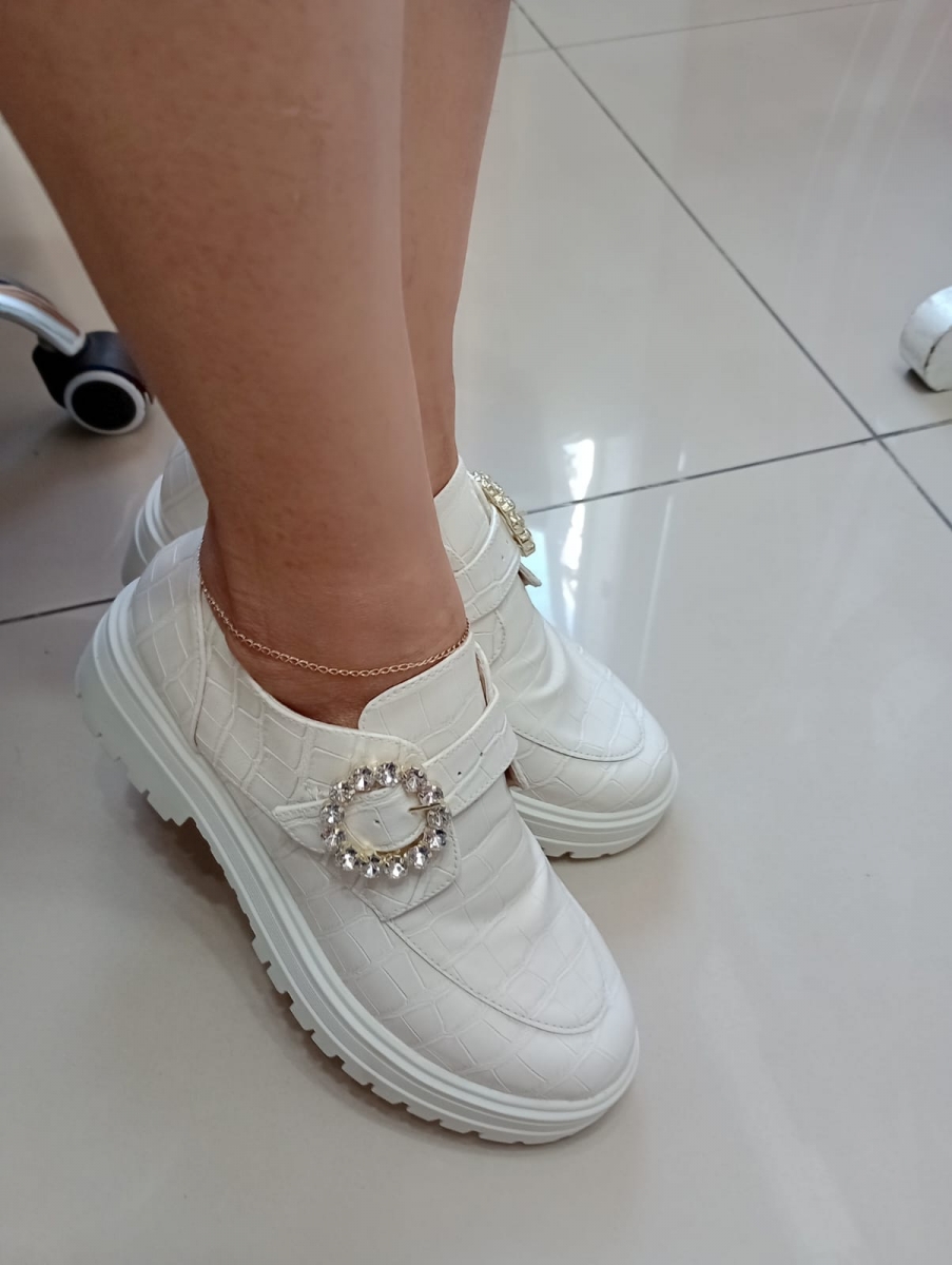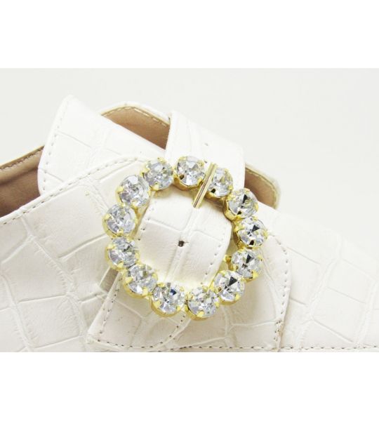252581 - Mocassim Off White com Fivela em Strass- Lilian Soares