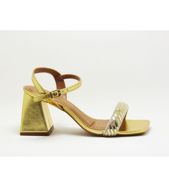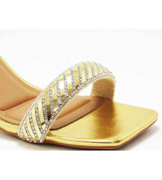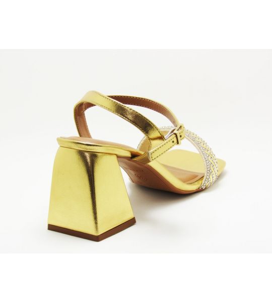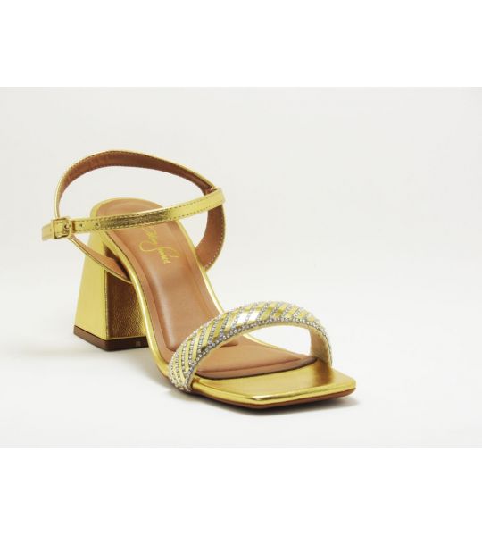 252674 - Sandália Dourada Com Strass Salto Geométrico - Lilian Soares