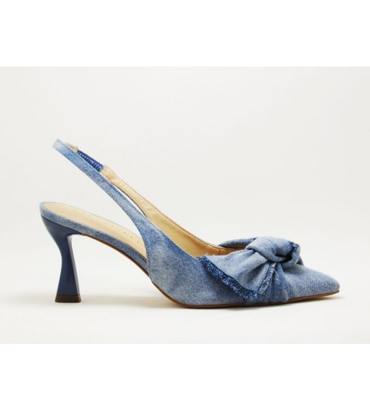 252931 - Scarpin Slingback Jeans com Laço Cecconello - Lilian Soares