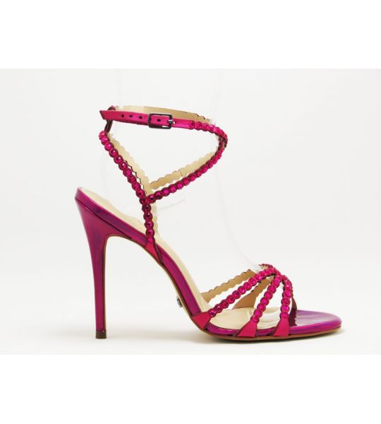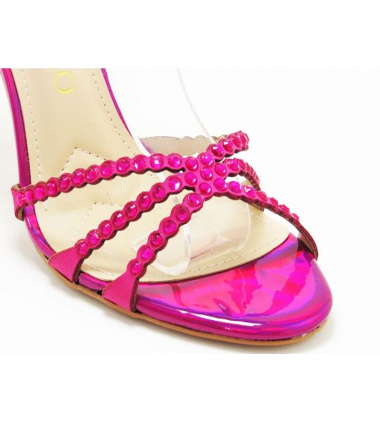 252945 - Sandalia Holográfica Pink Fuchsia com Strass Cecconello - Lilian Soares