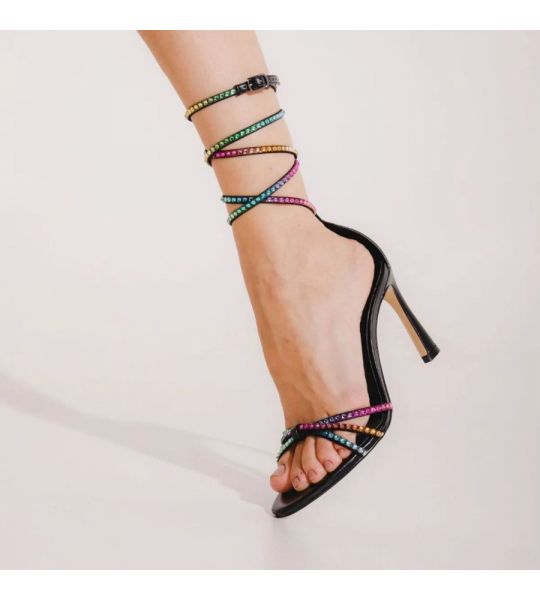 253440 - Sandalia Preta com Strass Furta Cor Cecconello - Lilian Soares