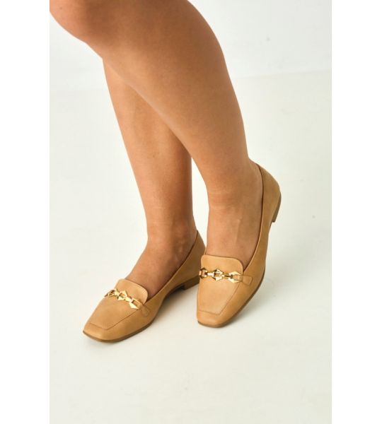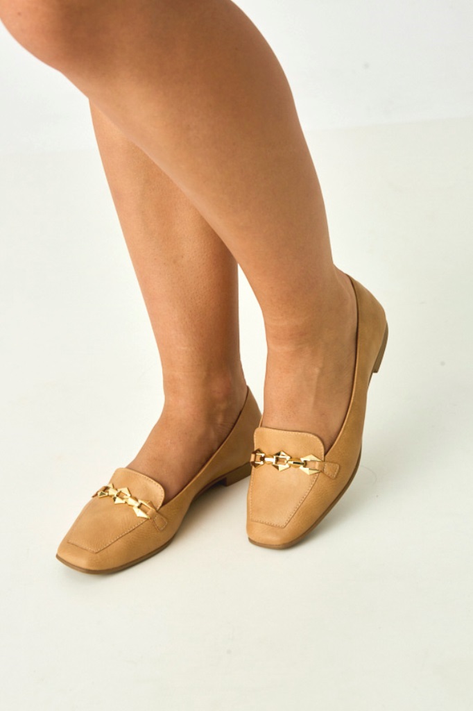 254718 - Loafer Caramelo com Bridão Dourado- Lilian Soares