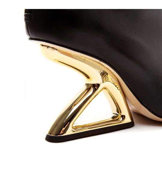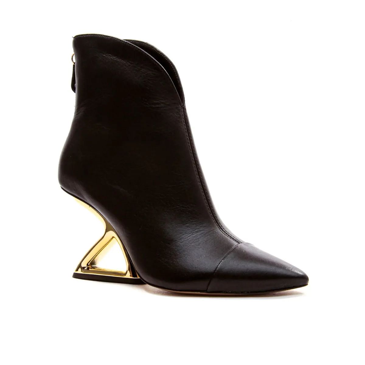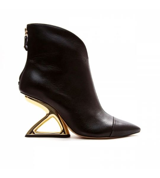 Esta Bota de Couro Exibe Um Design Arquitetônico Deslumbrante, com Um Cano Curto e Um Salto Alto Que Se Destaca Por Sua Forma Inovadora e Geométrica. Feita com Couro de Alta Qualidade, a Bota Combina Elegância e Durabilidade. o Salto Arquitetônico Adiciona Uma Dimensão Única, Conferindo Uma Estética Moderna e Ousada Ao Calçado. com Fechamento Prático e Detalhes Refinados, Esta Bota É a Escolha Perfeita Para Quem Procura Um Toque de Vanguarda em Seu Estilo, Proporcionando Um Visual Contemporâneo e Sofisticado.