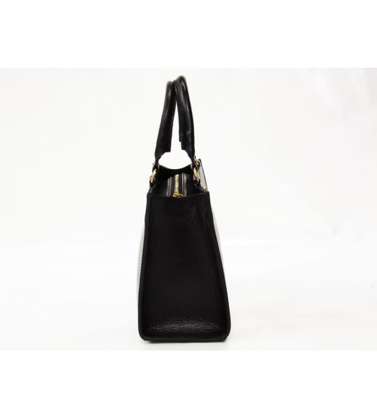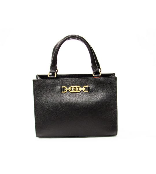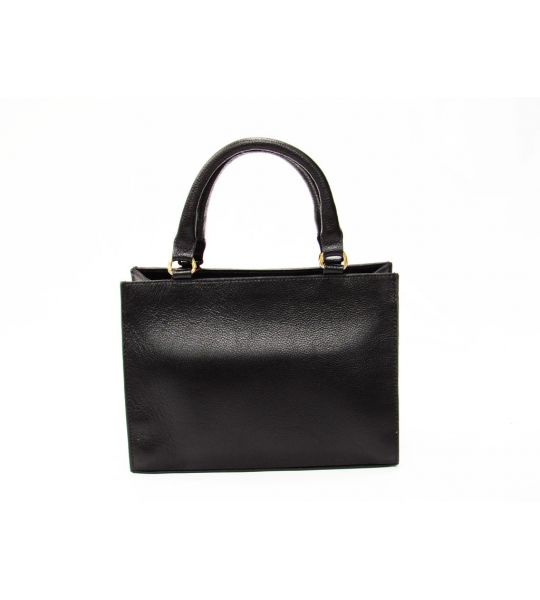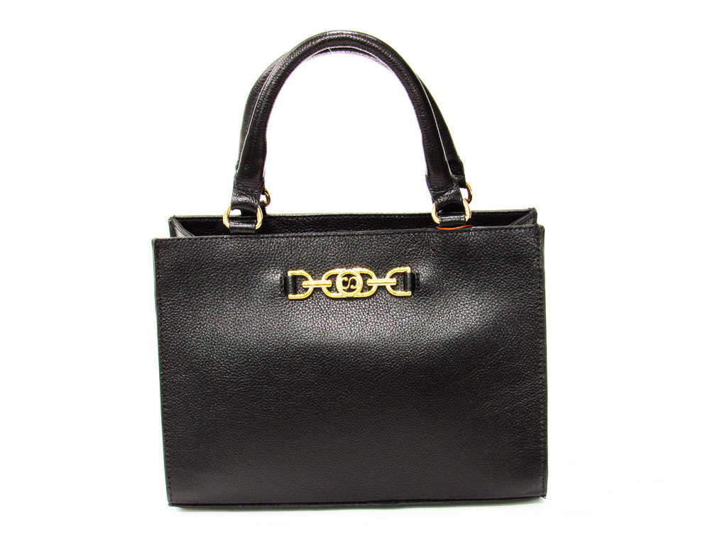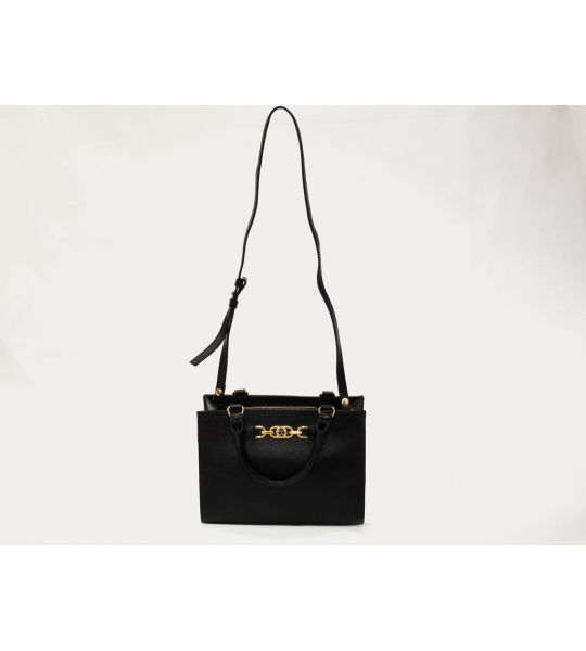 256417 - Bolsa Média Estruturada Preta com Bridão Dourado- Lilian Soares