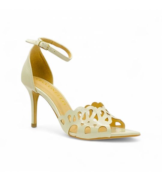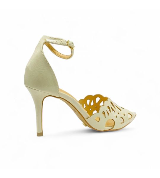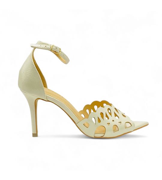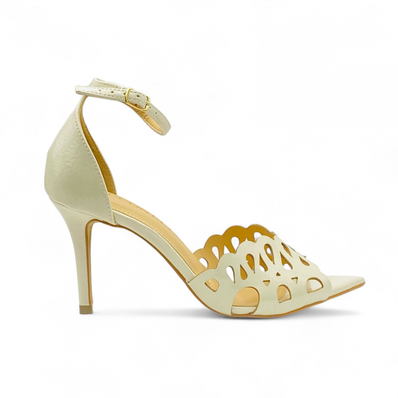 Esta Sandalia Combina Elegância e Modernidade de Forma Única. o Salto Alto Fino Proporciona Uma Postura Graciosa e Sofisticada, Perfeito para Ocasiões Especiais. Os Recortes a Laser em Criam Padrões Exclusivos e Detalhes Intricados Ao Redor do Sapato, Destacando-Se Pela Sua Originalidade e Estilo Contemporâneo. o Bico Fino Adiciona Um Toque de Refinamento, Enquanto a Lateral Interna Aberta Confere Um Charme Adicional e Um Toque de Sensualidade Ao Design. Ideal para Complementar Vestidos de Festa ou Looks Mais Refinados,