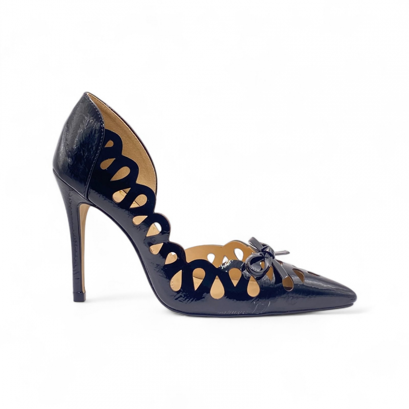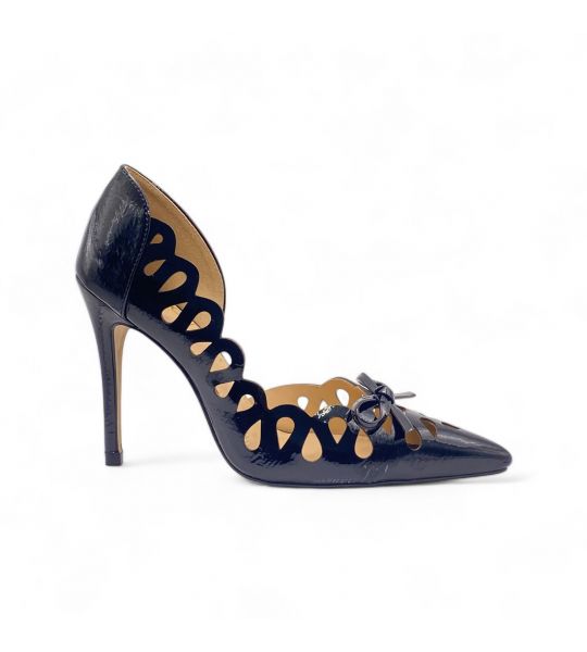 Este Scarpin Combina Elegância e Modernidade de Forma Única. o Salto Alto Fino Proporciona Uma Postura Graciosa e Sofisticada, Perfeito para Ocasiões Especiais. Os Recortes a Laser em Criam Padrões Exclusivos e Detalhes Intricados Ao Redor do Sapato, Destacando-Se Pela Sua Originalidade e Estilo Contemporâneo. o Bico Fino Adiciona Um Toque de Refinamento, Enquanto a Lateral Interna Aberta Confere Um Charme Adicional e Um Toque de Sensualidade Ao Design. Ideal para Complementar Vestidos de Festa ou Looks Mais Refinados, Este Scarpin Garante Um Visual Deslumbrante e Cheio de Personalidade.