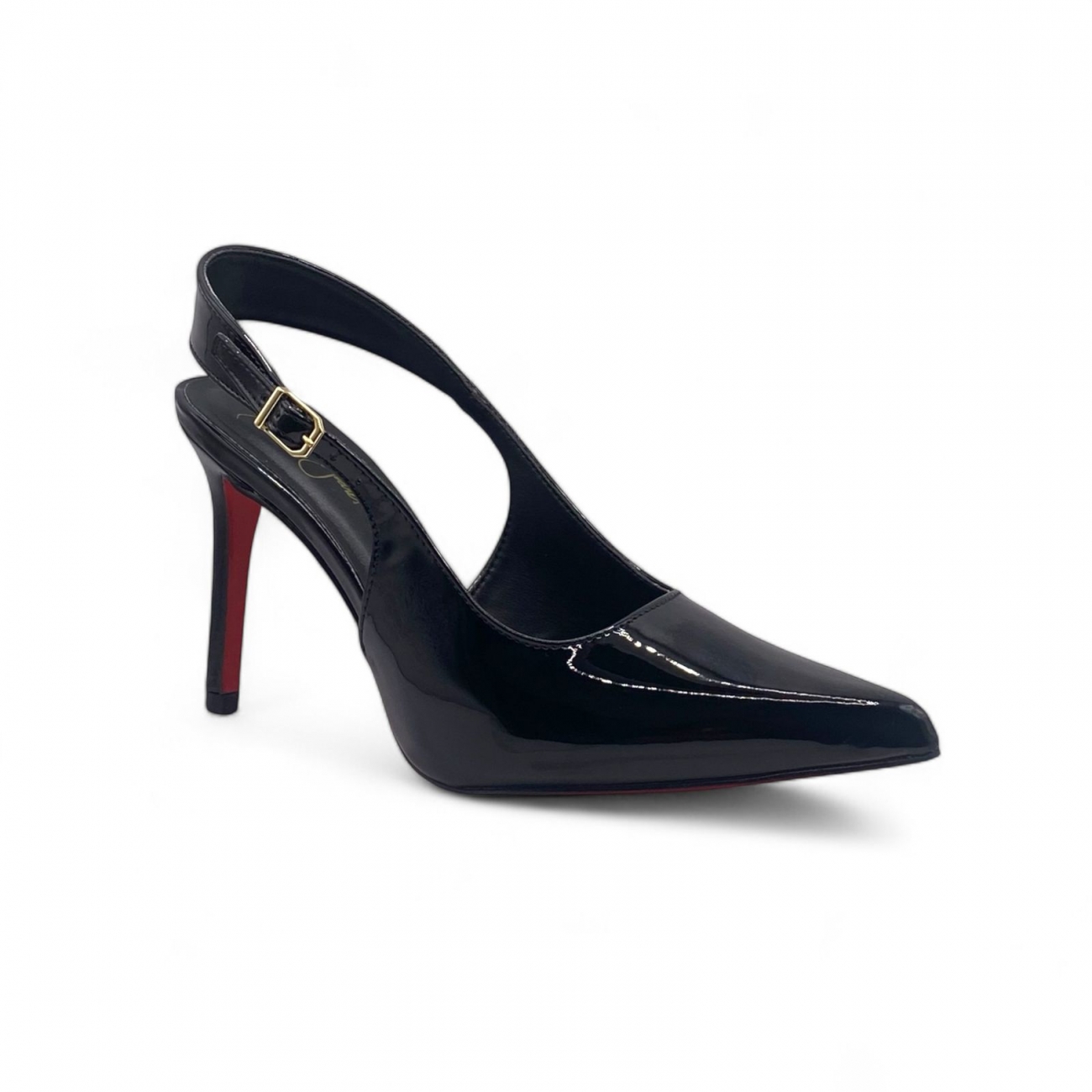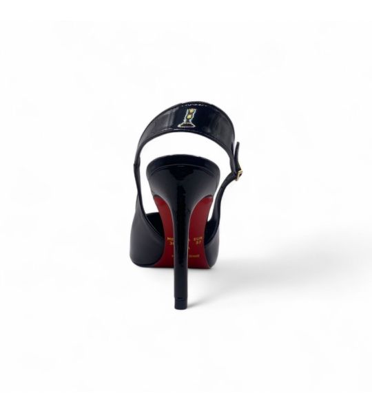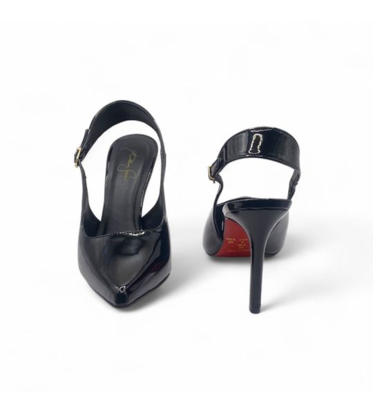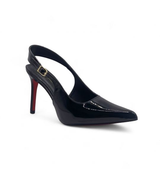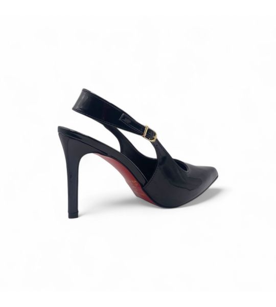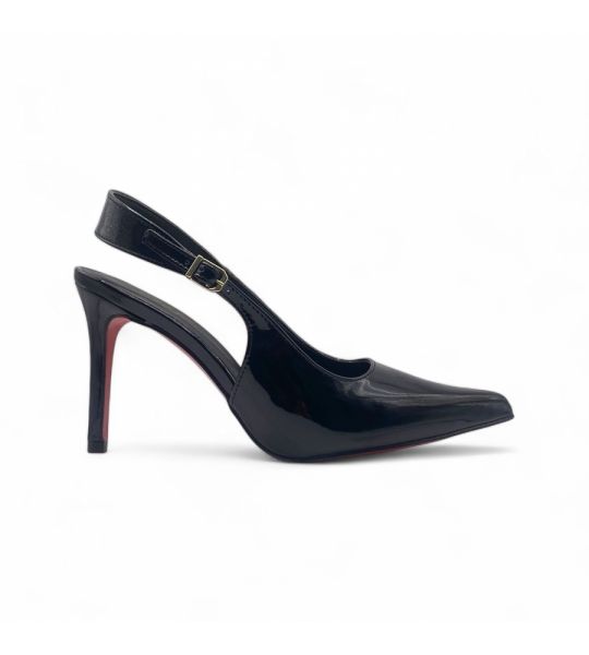 257147 - Scarpin Slingback Preto Verniz com Sola Vermelha Salto Médio - Lilian Soares